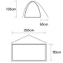 【重量】1270g [1,120g(インナー、フライ、ポール)+150g(ガイライン、収納袋、ペグ8本)] 【サイズ】設営時:間口205×奥行90×高さ100cm、収納時:本体8×15×25cm、ポール39cm【人数】1人用【内容】テント、ポール、ペグ、フライシート、テントマット(銀マット)